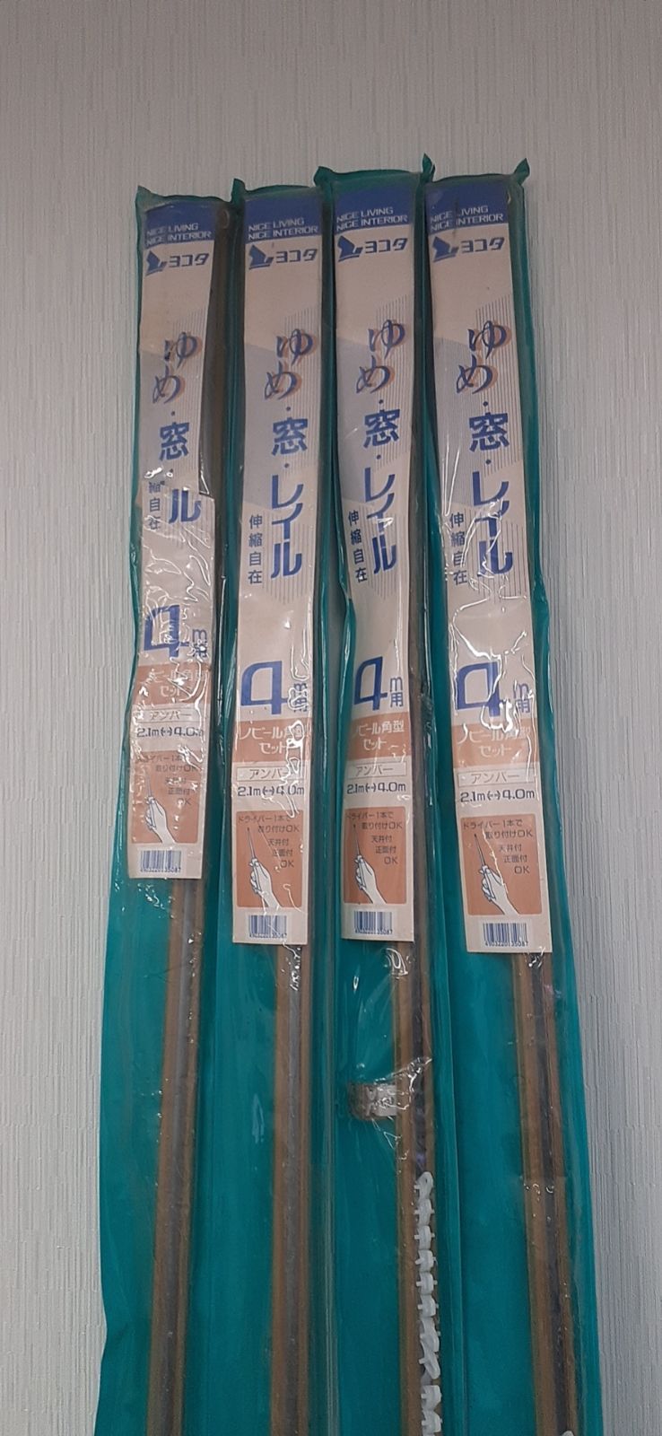 現地引取り 訳アリ カーテンレール 4m4本セット ノビール角型シングル ヨコタ アンバー
