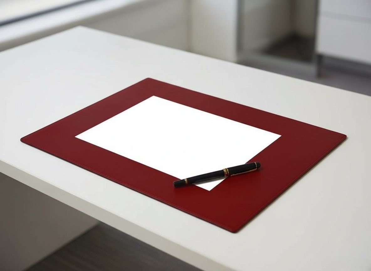 かばん屋さんの手作り 片面 レザー デスクマット34 cm×46.5 cm キーボード マウス 用 レッド