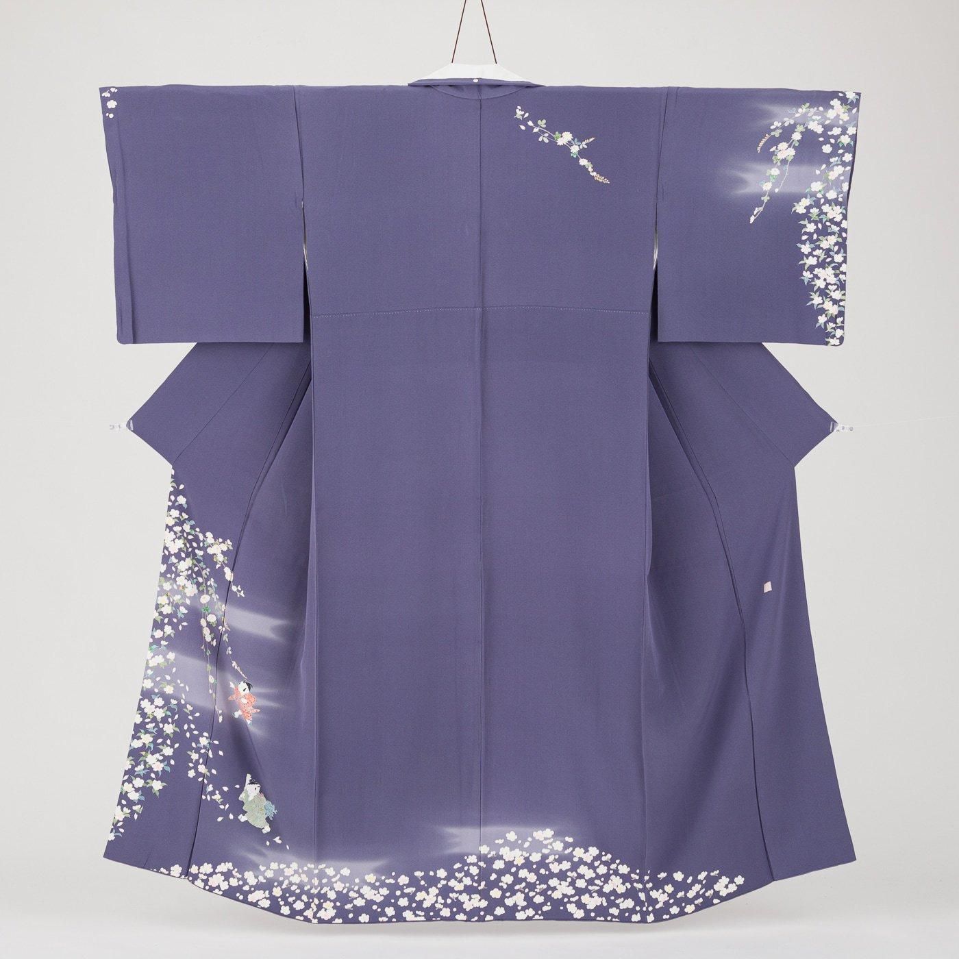 訪問着 花と遊ぶ童子 作家物 裄長 ゆったりサイズ