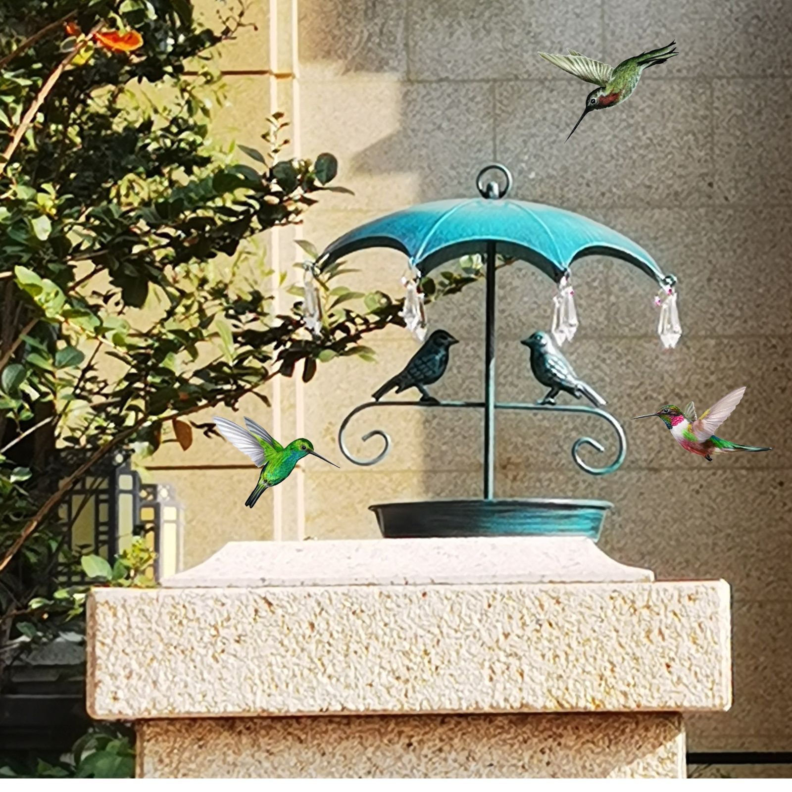 バードフィーダー 小鳥 野鳥 用 給餌器 餌箱 餌台えさ置き 置物 傘の下にいる小鳥 餌入れ 鳥 ガーデンオブジェ インテリア ガーデニング ペット食器 野鳥観察 鉄 バード用品 ヴィンテージ風 アンティーク調
