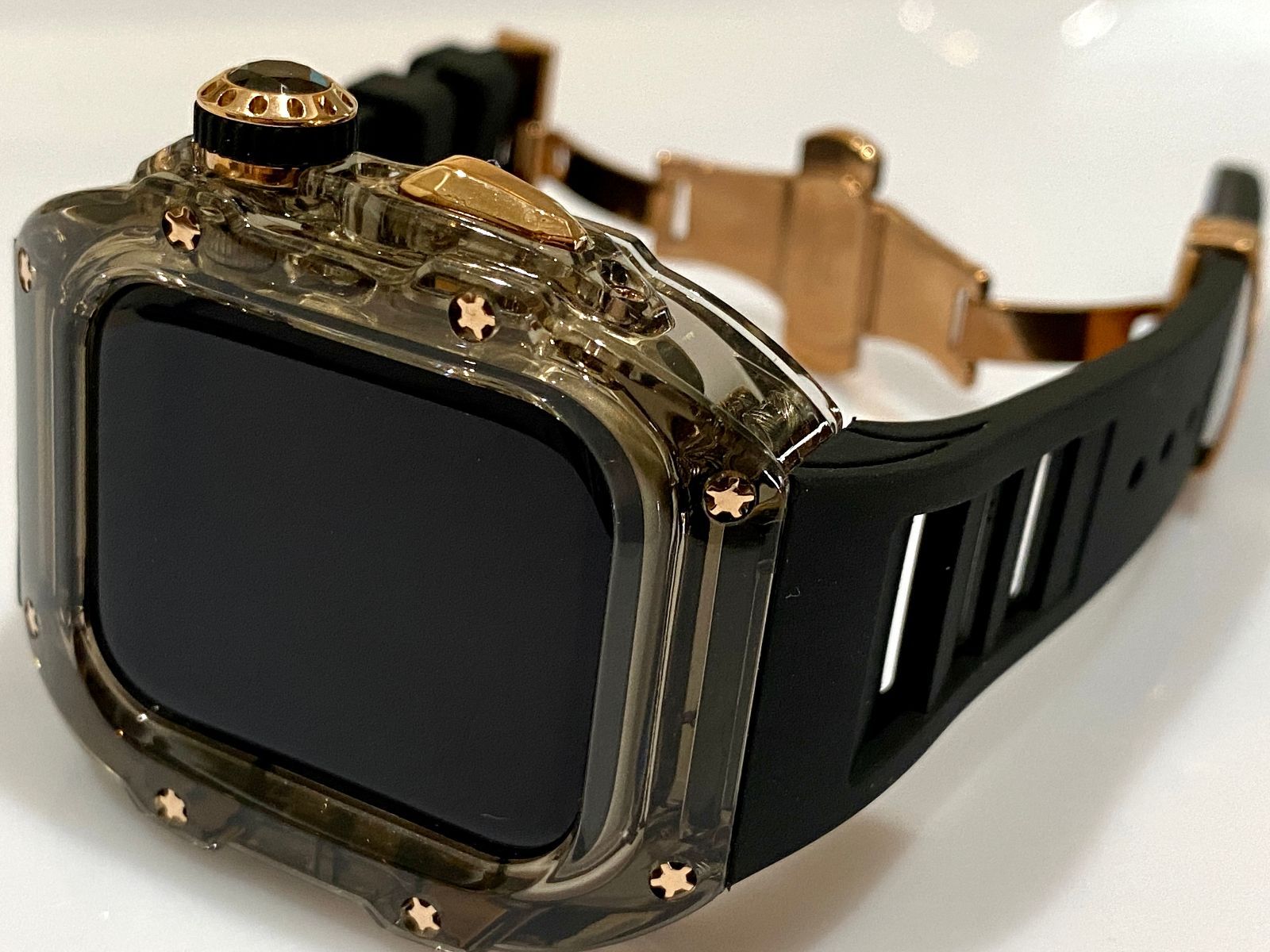 スモーク 黒 アップルウォッチバンド ラバーベルト カバー Apple Watch ケース 45 mm. 44 mm スポーツ