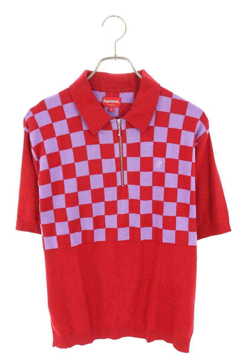 シュプリーム 22 SS checkerboard zip polo チェッカーボードハーフジップニット半袖ポロシャツ メンズ S