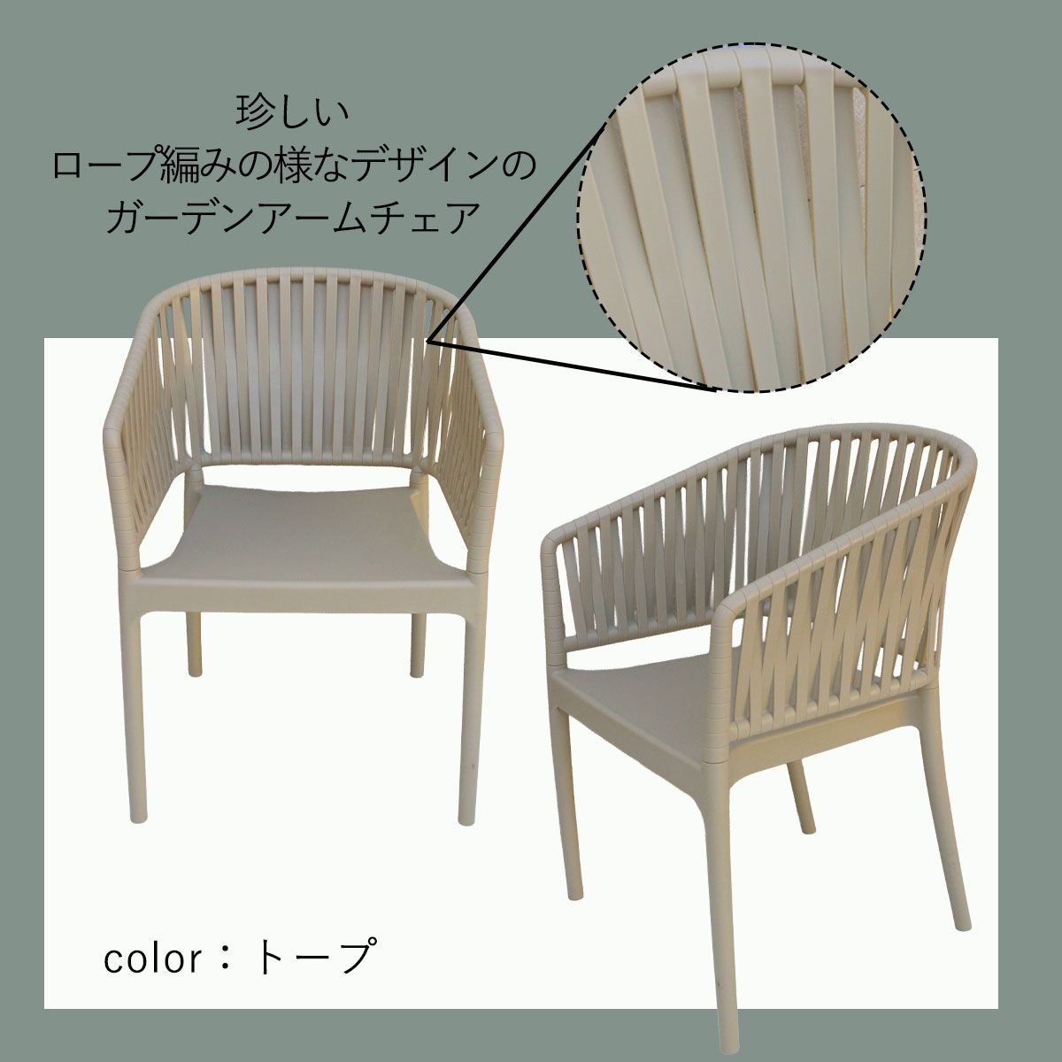 モダンな珍しいロープ編みデザインのアームチェア