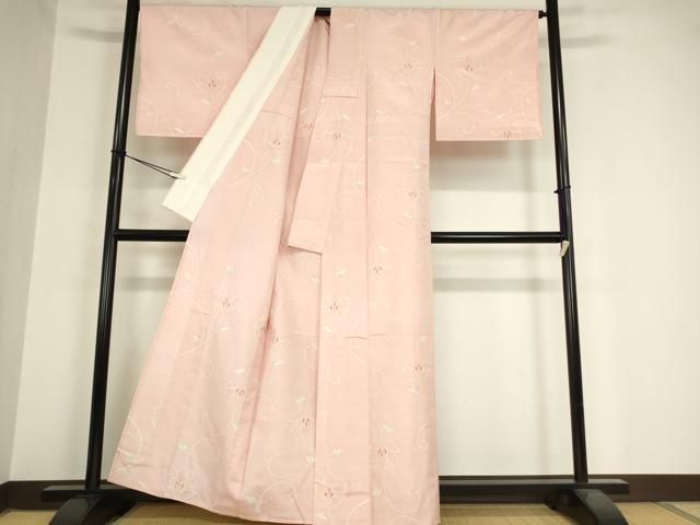 平和屋着物 上質な紬 単衣 花唐草文 正絹 az