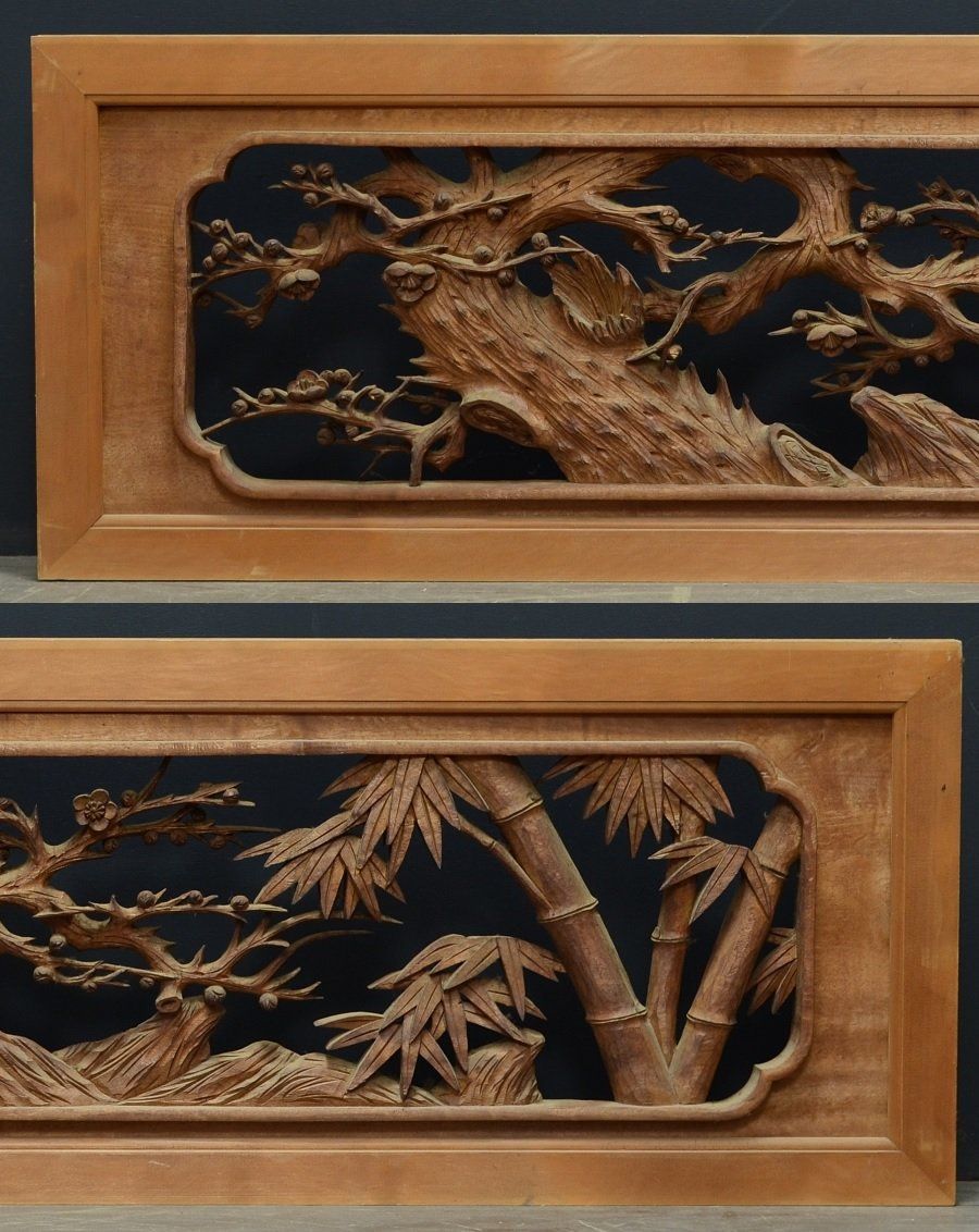 蔵A 4971 建具 彫刻欄間 松竹梅 一対 古民家座敷