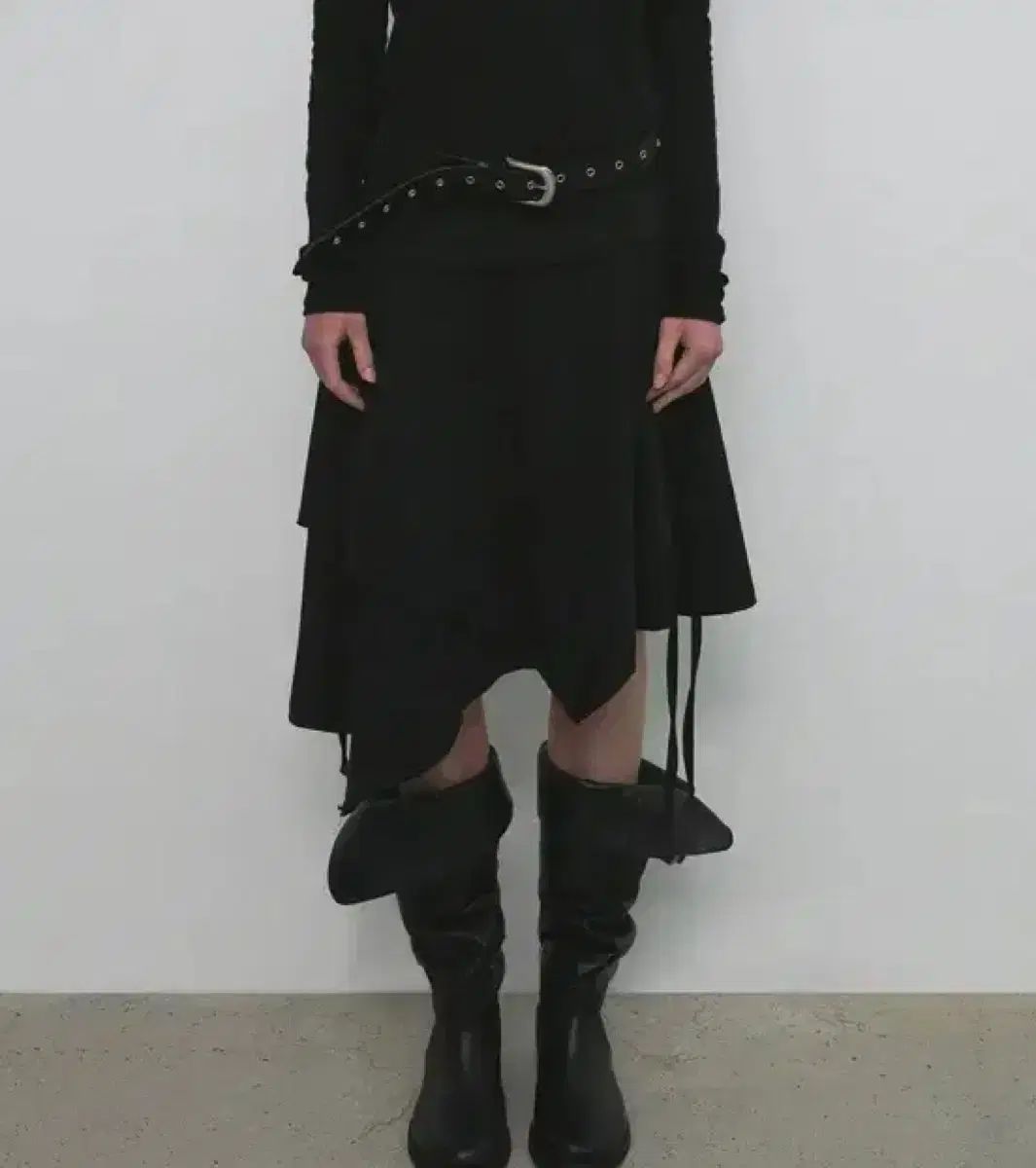 サンドリック アシンメトリー シャーリング ミディ スカート ブラック