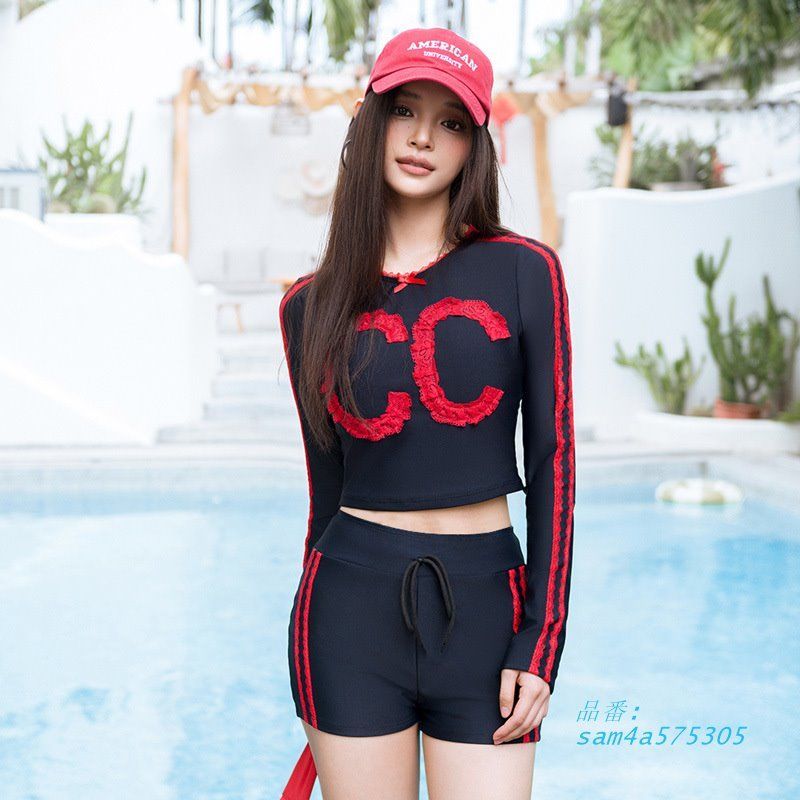水着 レディース セパレート タンキニ 長袖 ショートパンツ フリル 婦人 へそ出し リボン プルオーバー 露出控えめ プール 日焼け対策 海水浴 ビーチ オトナ女子 am 4 a 575305