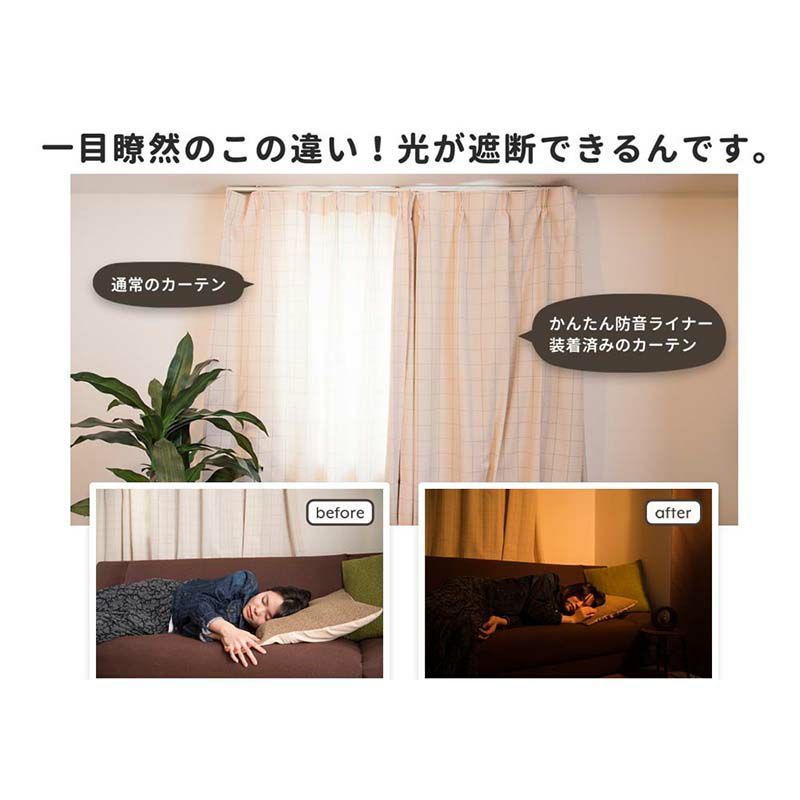 防音ライナーは、すでにお手持ちのカーテンに取り付けるだけで、簡単に防音できます。