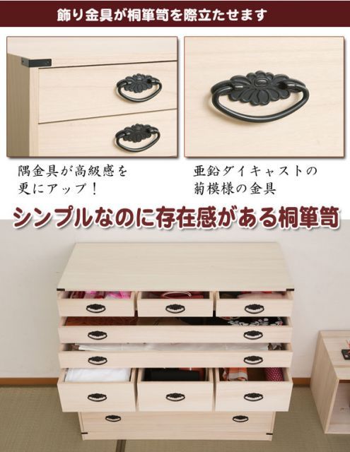 単独使いやセット購入又は同シリーズの桐箪笥を既にお持ちの方も重ねて使える万能型。