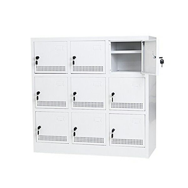 シューズボックス 9人用 完成品 鍵付き スペアキー付き 扉付き シューズロッカー シューズラック スチールロッカー スチール キャビネット スチールシューズボックス 靴箱 下駄箱 収納 業務用 shoesbox-9 選択 ホワイト