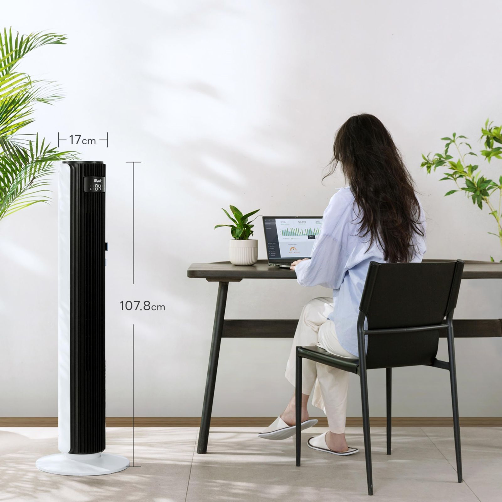 【オールシーズン使える】Levoit42インチタワーファンは、日本製DCモーターを使用しており、省エネで極静音、長時間の運転が可能です。強力な風で衣類を早く乾かし、室内を快適に保ちます。さらに、猛暑対策としてエアコンと併用することで、お部屋の換気にも役立ちます。