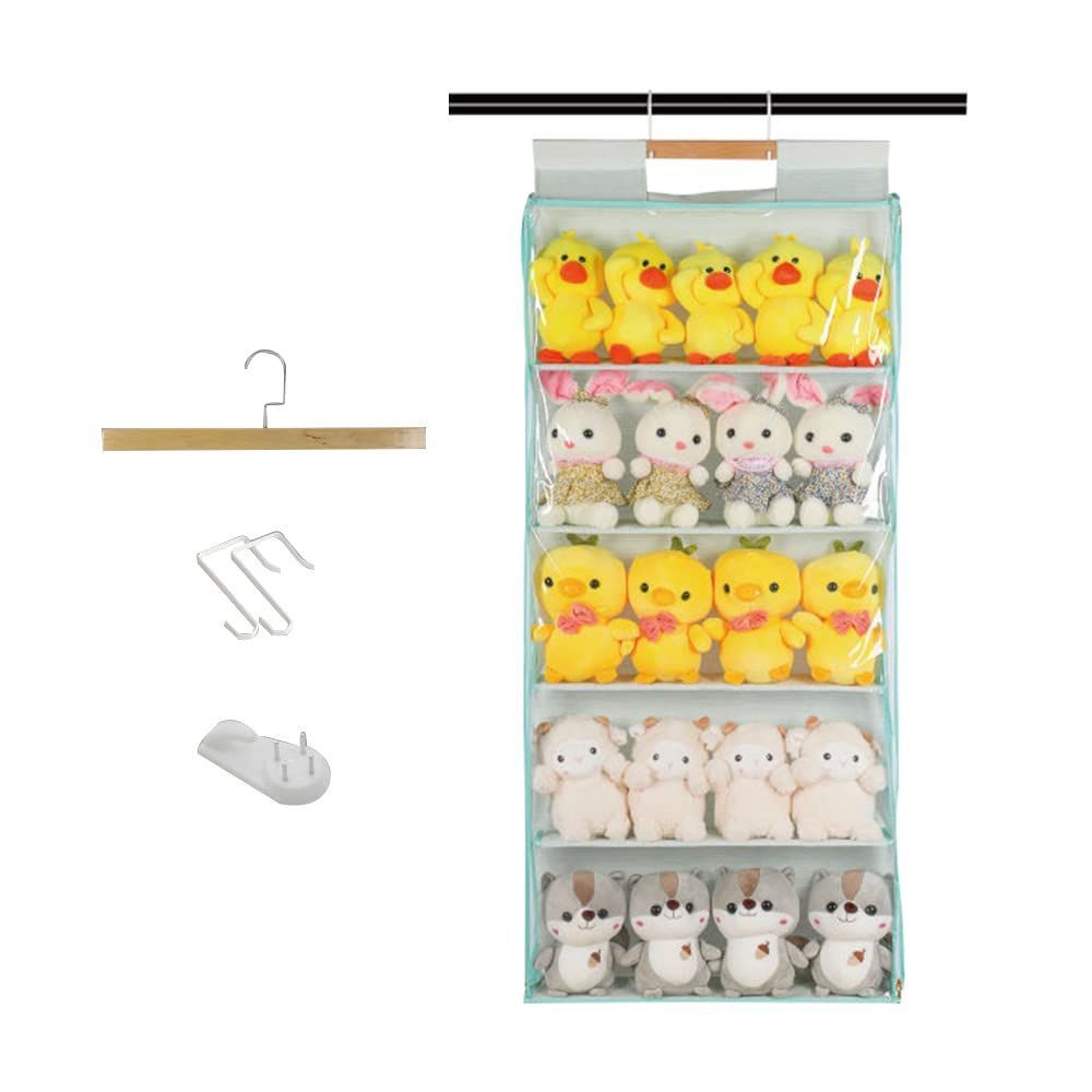 タイプC-5段ライトグリーン Petmoon ぬいぐるみ収納 ぬいぐるみウォールポケット ディスプレイ ケース 収納ケース 収納ボックス 見せる収納 小物 ドア掛け収納式ポケット