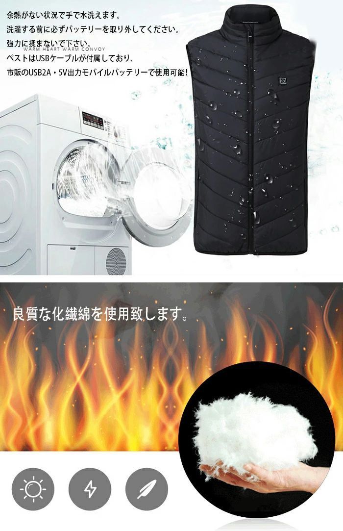 電熱ベスト ヒーターベスト 電熱 ベスト バイクウェア 電熱ジャケット USB充電 ヒートベスト 男女兼用 水洗いでき 防寒ベスト