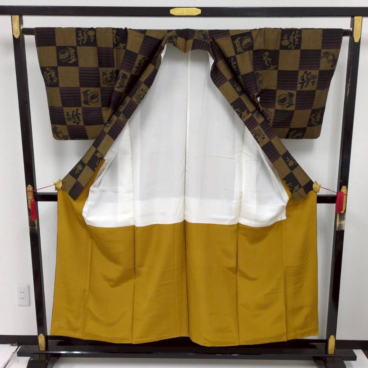 真綿紬 貴道楽 「春夏 冬」あきない 市松模様 正絹 着物 MK-203