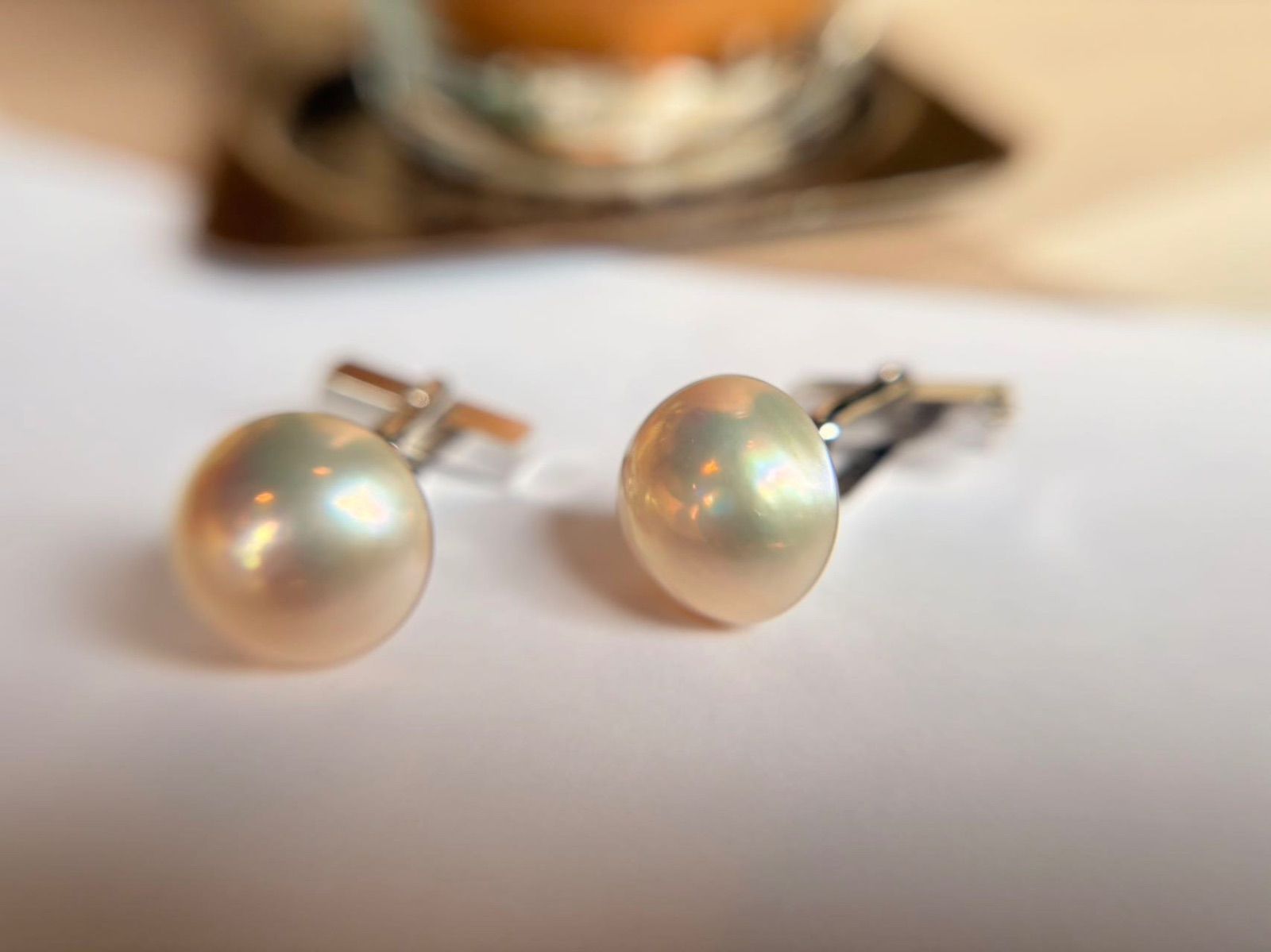 シルバー製 天然マベパール カフリンクス 14〜15 mm