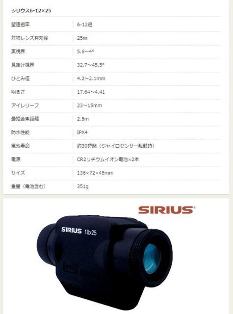 ジャイロセンサー内蔵、防振スコープ、シリウス。
