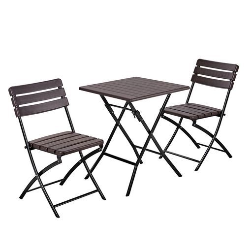 VECELOアウトドアテーブルチェアセット3点セット折りたたみ式ガーデンテーブルコンパクト収納木目調防水防錆軽量庭ベランダキャンプバーベキュー