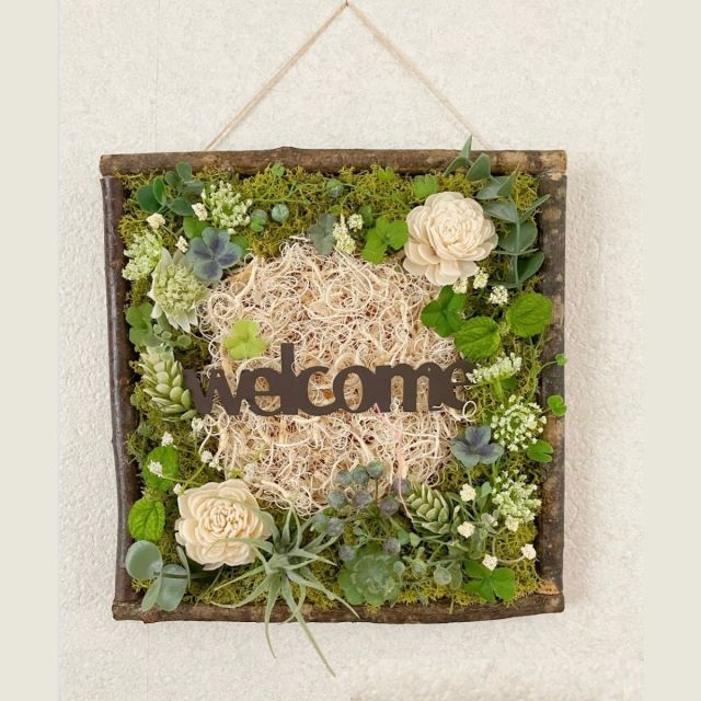Atsukoデザイン ウェルカムボード アーティフィシャルフラワー アレンジメント 手づくり ハンドメイド フェイク グリーン インテリア オーナメント ディスプレイ 造花 壁 玄関 窓 ドア 開店祝い ギフト プレゼント