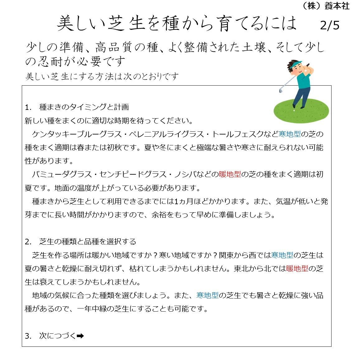 播種量:約15g〜約20g/m2