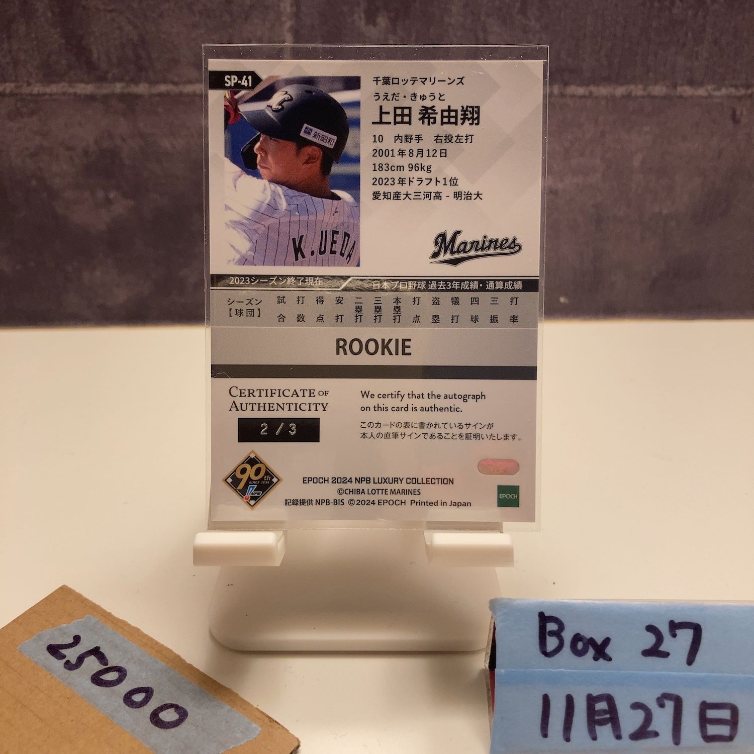 2024 EPOCH Luxury Collection 上田希由翔 2/3 直筆サインカード 千葉ロッテマリーンズ RC ルーキー Rookie