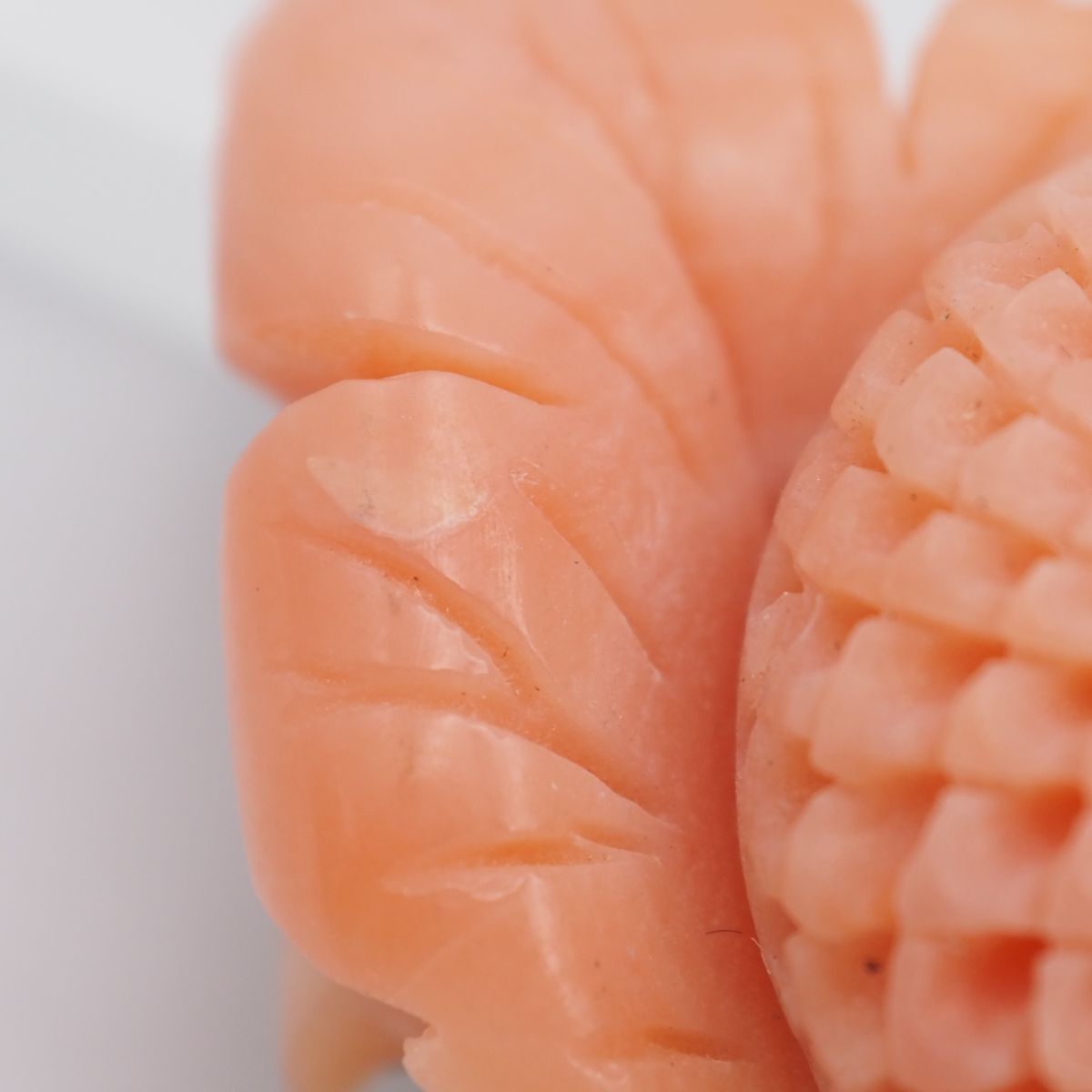 H 049 珊瑚 サンゴ 帯留め 花彫刻 精緻 裏細工 デザイン シルバー 和装小物 誕生石