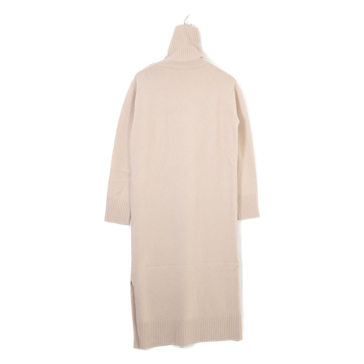 タイプ)13260103 ベージュ ウール×カシミヤ ショルダーボタン タートルネックニットワンピース