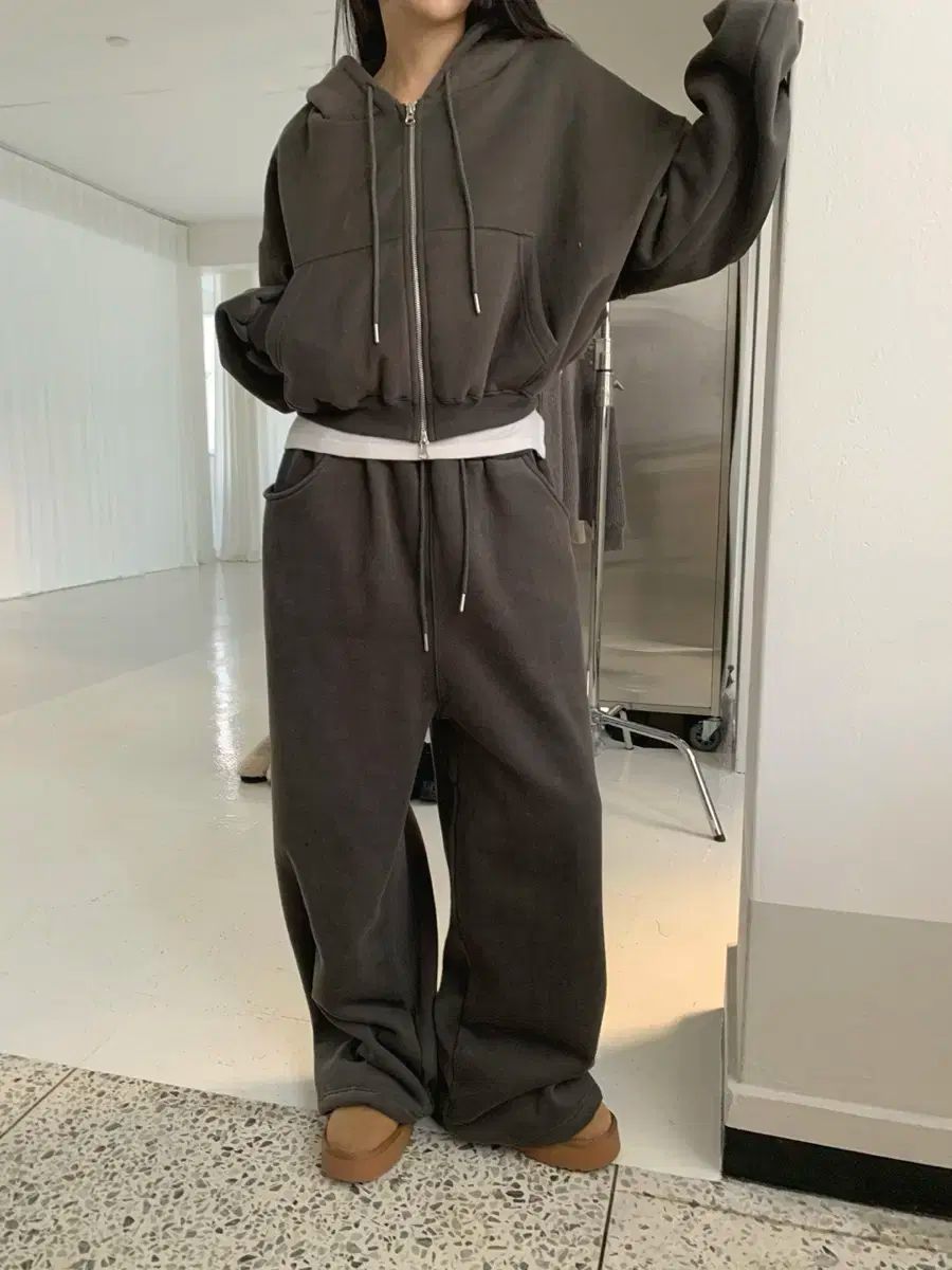 両面起毛 フードジップアップ ワイド トレーナー セット ダークグレー