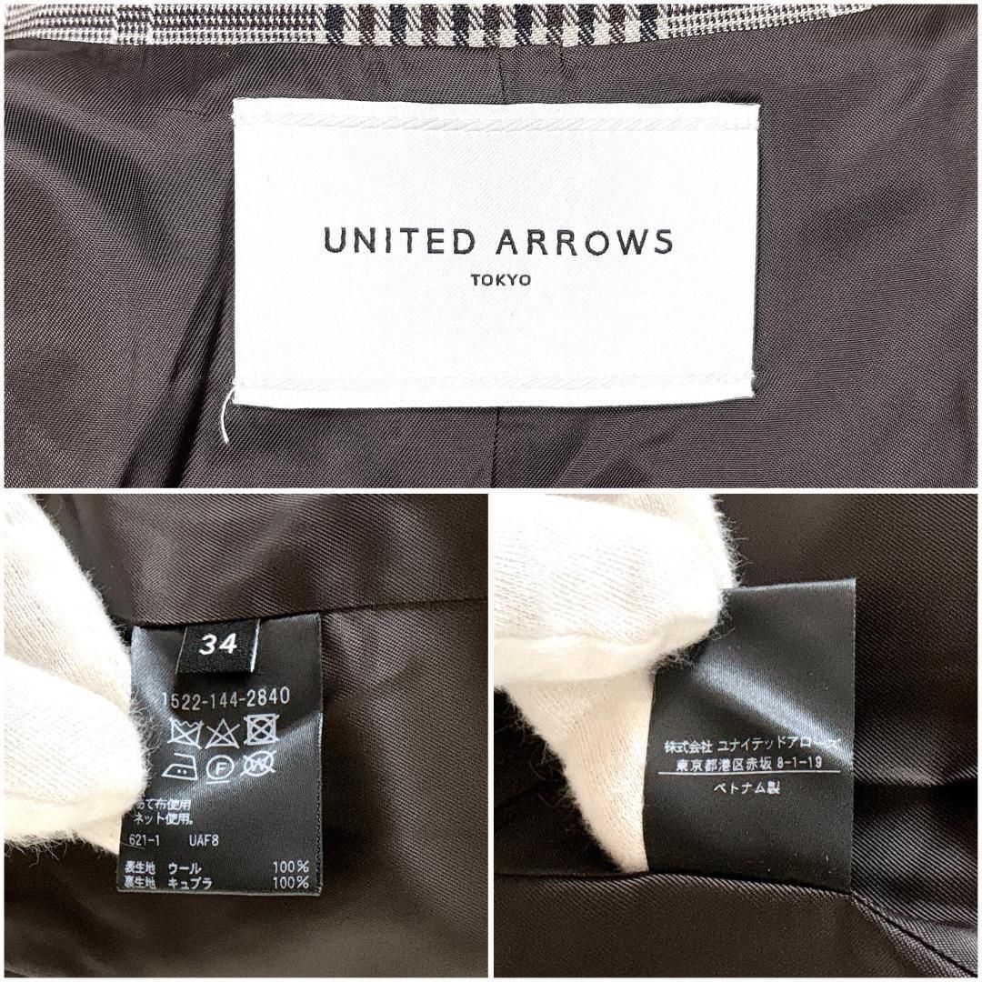 UNITED ARROWS ロングダブルジャケット 34 グレンチェック