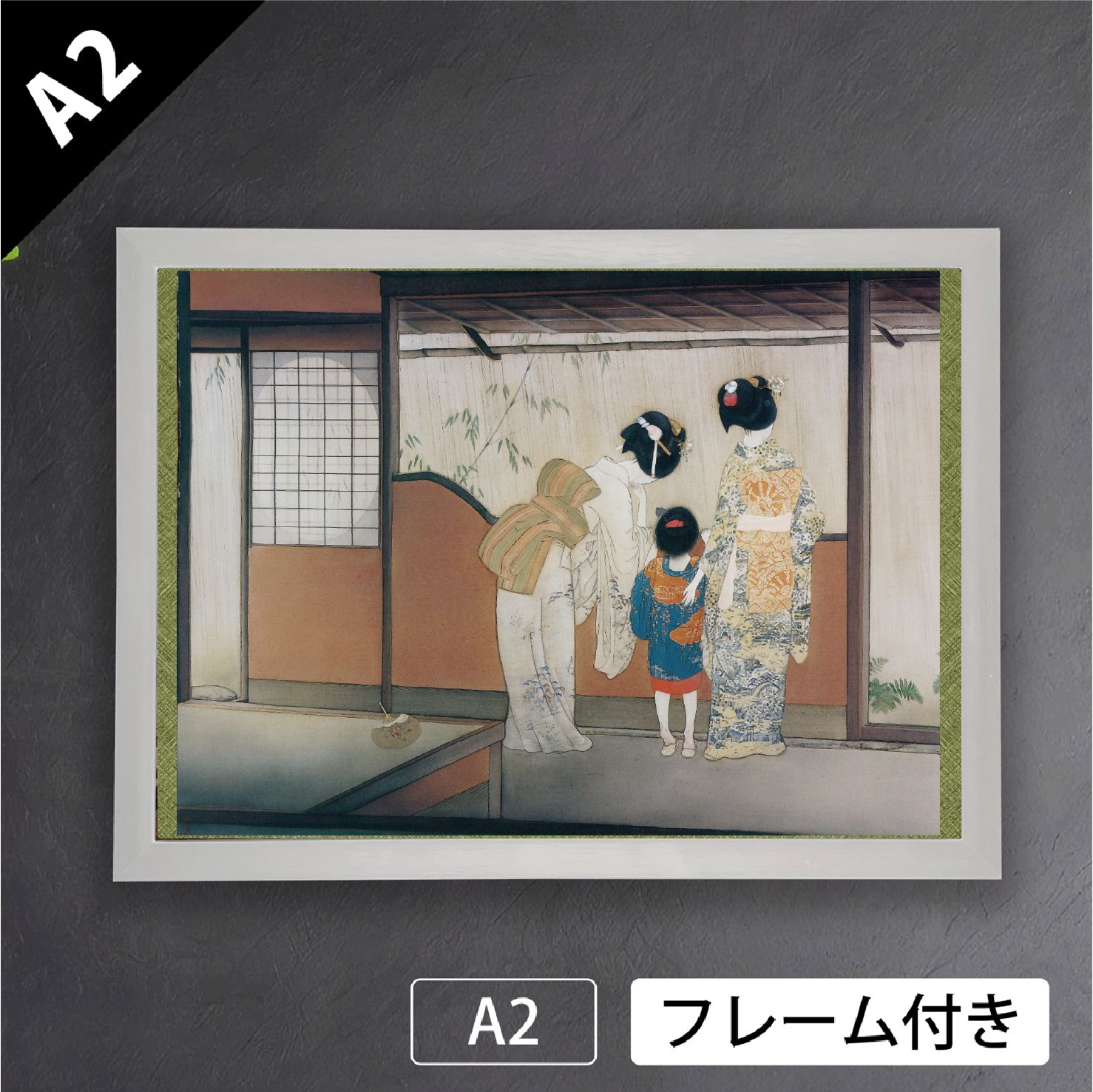 北野恒富 宵宮の雨 1928年 浮世絵 美人画 日本画 和 アートポスターA 2 マット紙 フレーム付 JP