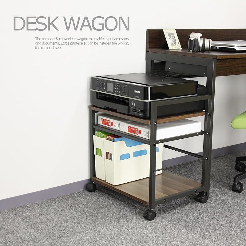 PJC 7001-BK プリンター台 3段 プリンターワゴン プリンターラック キャスター付き デスクの下に収納 0