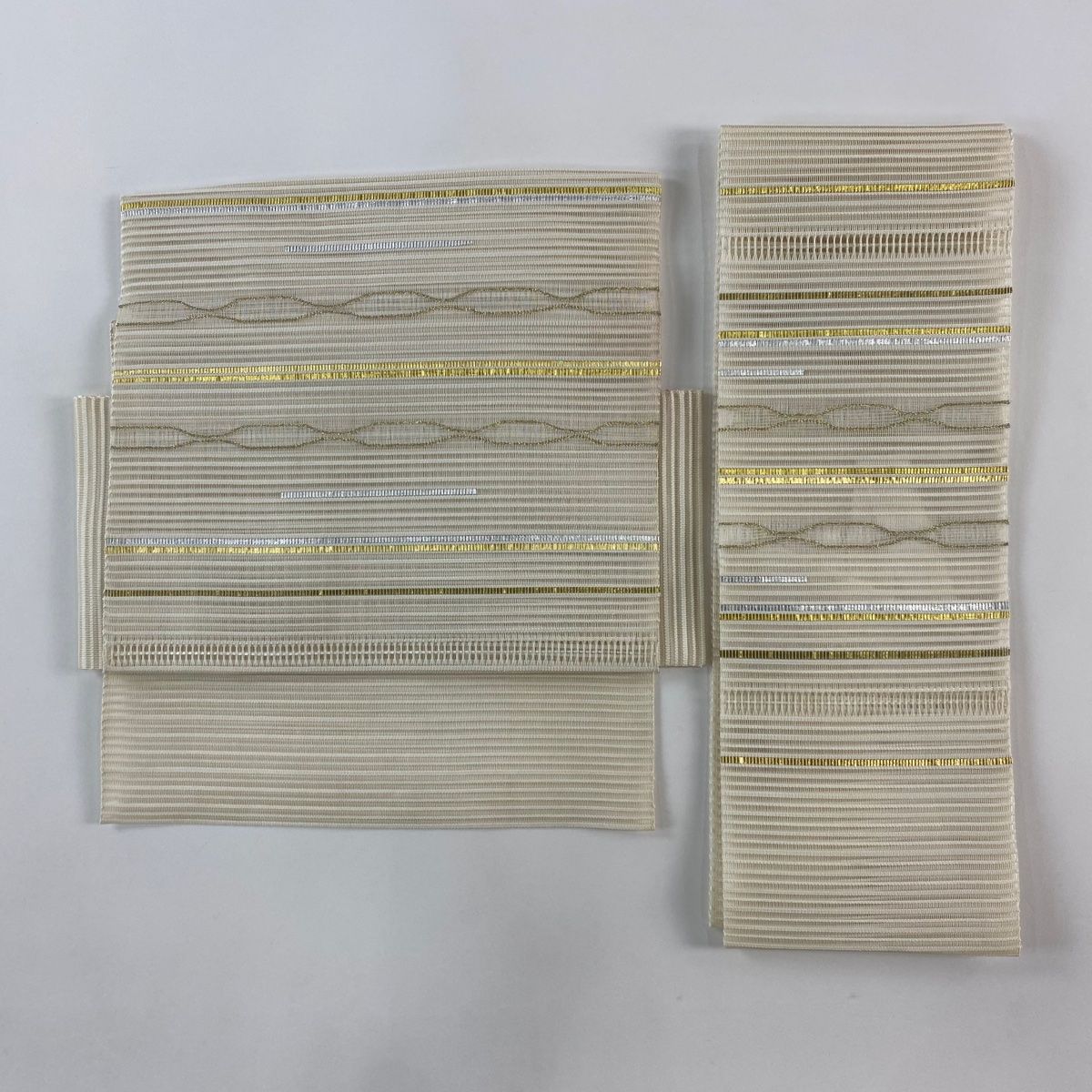 付け帯 秀品 作り帯 夏帯 絽 幾何学模様 縞 箔 金糸 クリーム 正絹