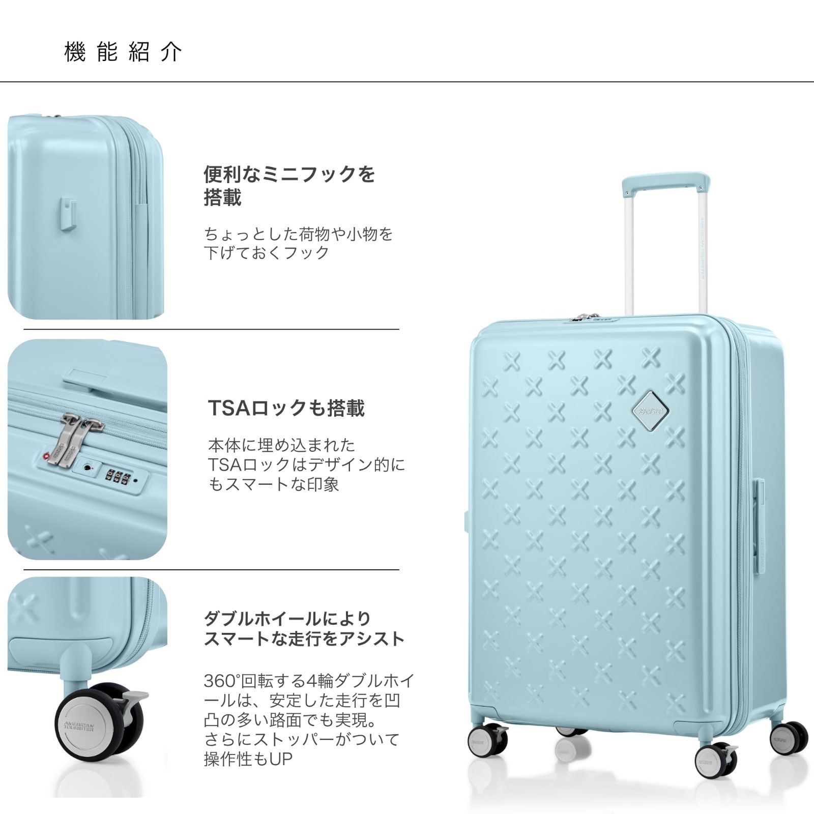 [アメリカンツーリスター] スーツケース キャリーケース パクストラ PAXTRA スピナー 20:80構造 ストッパー付き サイドミニフック付き 拡張機能付き エキスパンダブル TSAロック