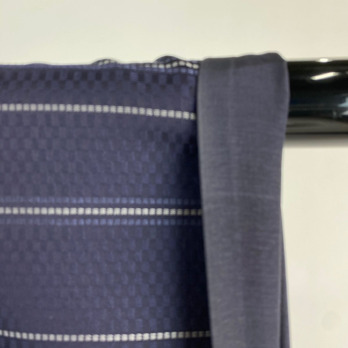 お召 身丈162 cm 裄丈64.5 M 袷 衣宝山 やまと 背抜き 落款 証紙 縞 市松 紺色 正絹