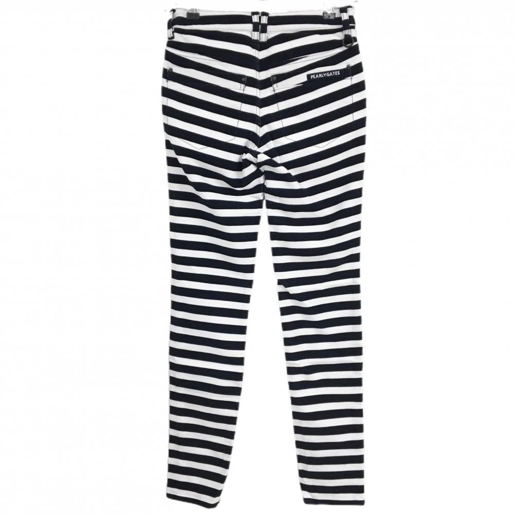 パーリーゲイツ パンツ 白×ネイビー ボーダー 表微起毛 ロゴ刺しゅう レディース 00 XS ゴルフウェア PEARLY GATES