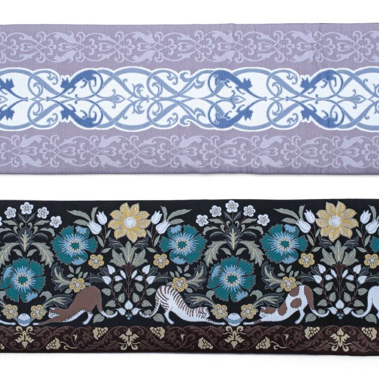 半幅帯 nico by WA KKA Cat s away 黒 ブラック KS-HE-010-01 リバーシブル 猫 ねこ 花柄 浴衣 長尺 ゆかた 細帯 半巾帯 紬 小紋 洒落着 hanhabaobi-00071