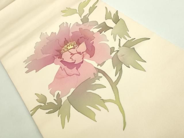平和屋着物 上 塩瀬 つけ帯 作家物 枝花文 ろうけつ染 薄香色地 kh 5