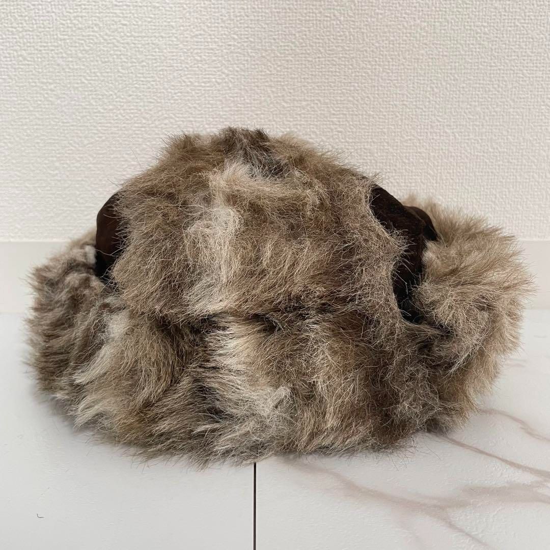 80 s ヴィンテージ スエード レザー 本革 フライトキャップ パイロット帽 ファー ブラウン系
