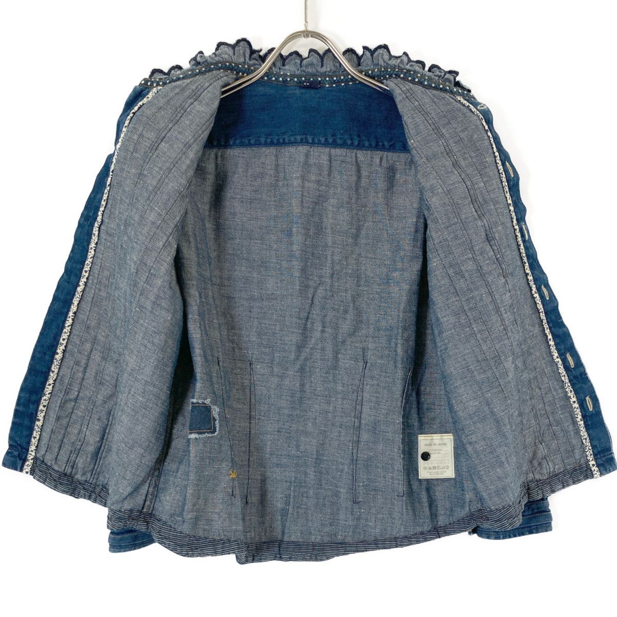 45 R フォーティファイブ アール 7073052 インディゴ コットン×リネン 小麦デニムのタックレースブラウス 2