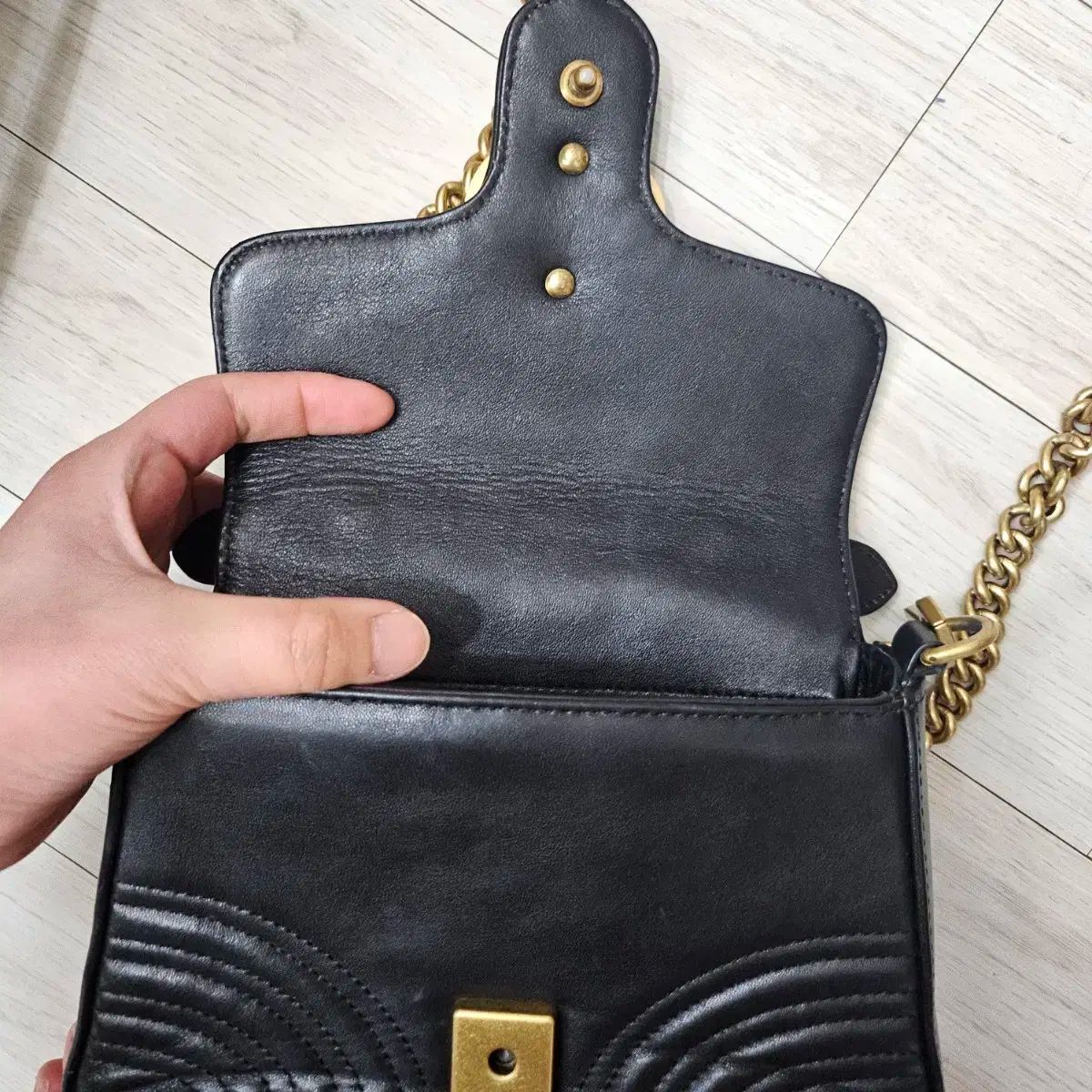 グッチ マーモント ミニ チェーンバッグ ブラックカラーです。ゴールド ロゴとチェーンが高級感をプラスします。クロスバッグとして使用しやすいサイズです。別途 コメント 無ければ すぐ 安全決済 お願いします!