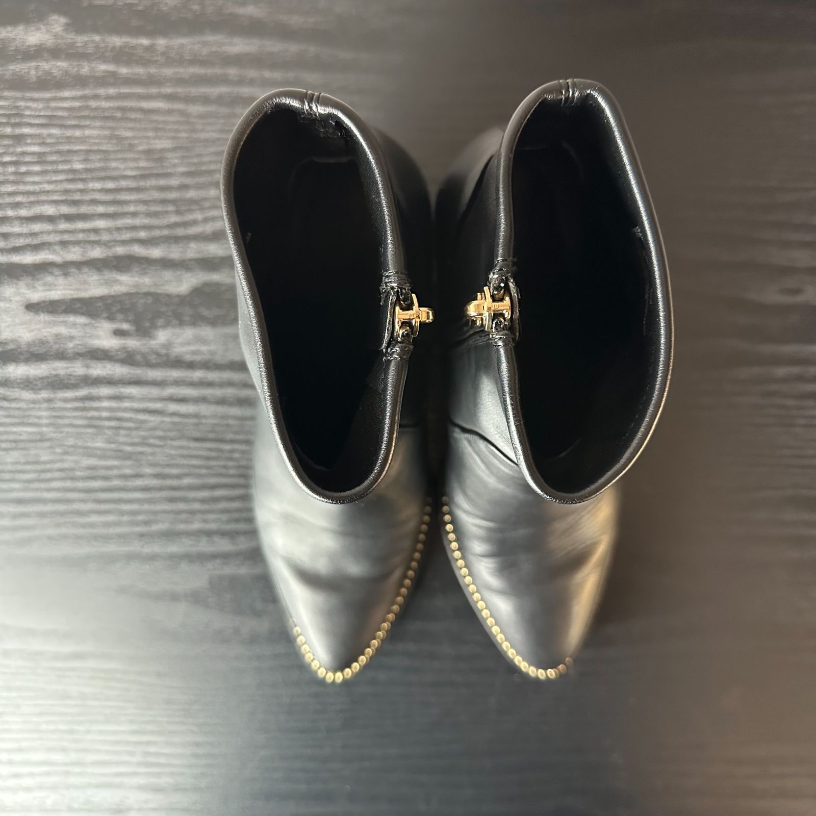 S 392 COACH コーチ PELL ペル G 4847 ロゴ スタッズ ソフトレザー ブーティ ショートブーツ 黒ブラック 6 C 23 cm