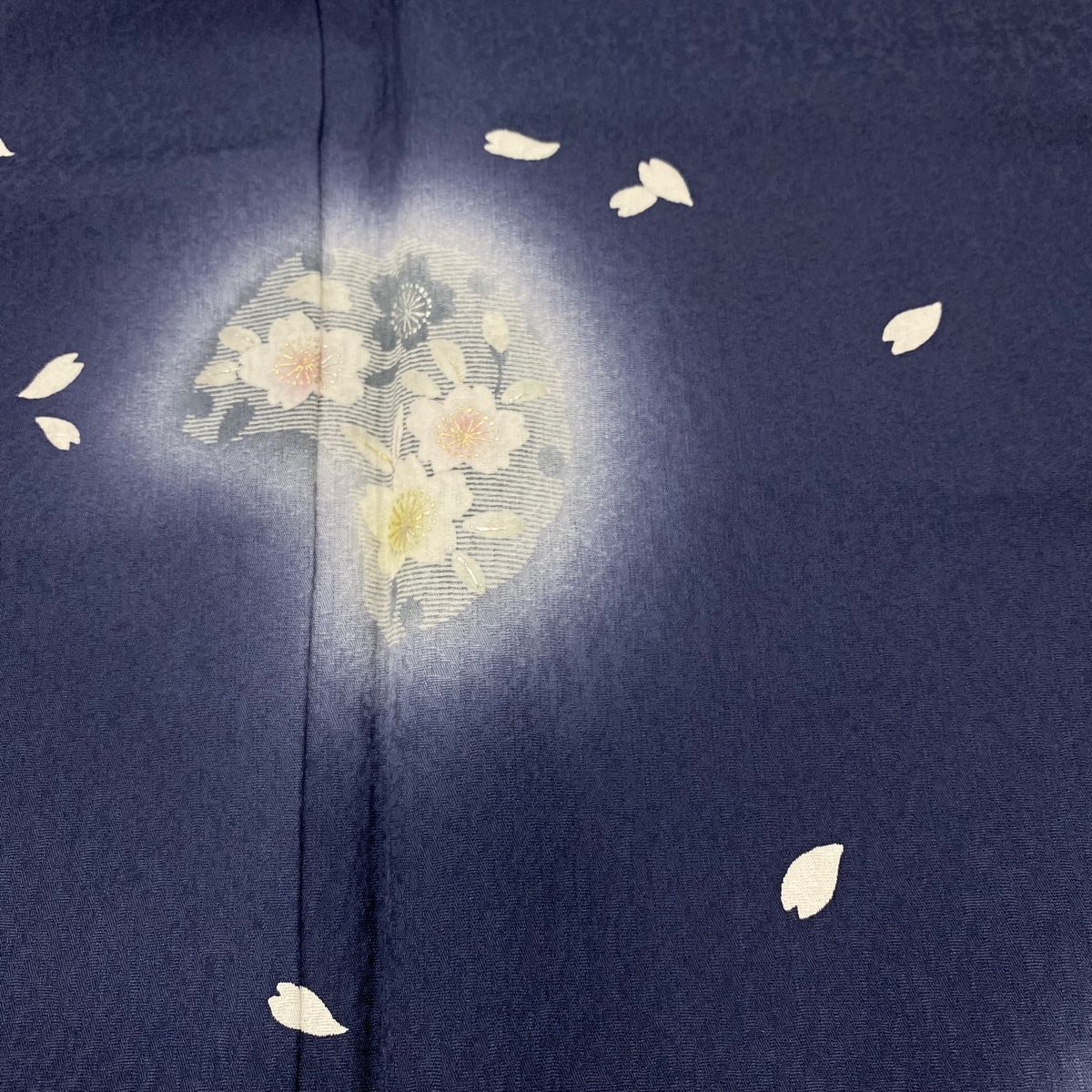 訪問着 身丈165.5 cm 裄丈66.5 M 袷 雪輪 桜 ぼかし 金銀彩 紺色 正絹