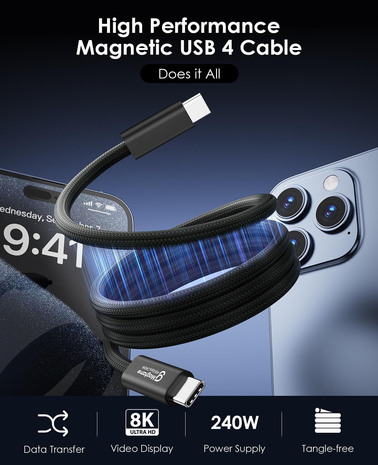 40 Gpbs高速データ転送 type-ctype-cケーブル usbc-usbcケーブル 240 W急速充電 8 K 60 HZ 4 144 HZ映像出力 磁力吸着絡まり防止 iPhone 15 Pro Pro_max Mac_Books ハブ ドッキングステーショ