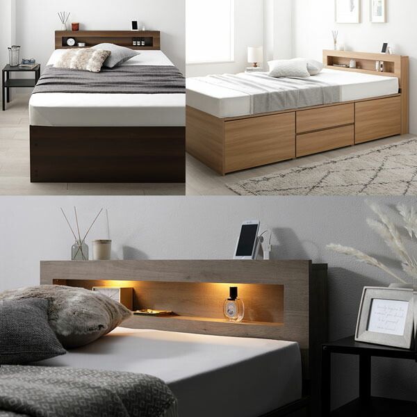 2口コンセント(1500W):ショート丈セミシングル/ショート丈シングル/通常丈シングル/通常丈セミダブルは右側に2口×1つ、通常丈ダブルは左右両側に2口×2つ