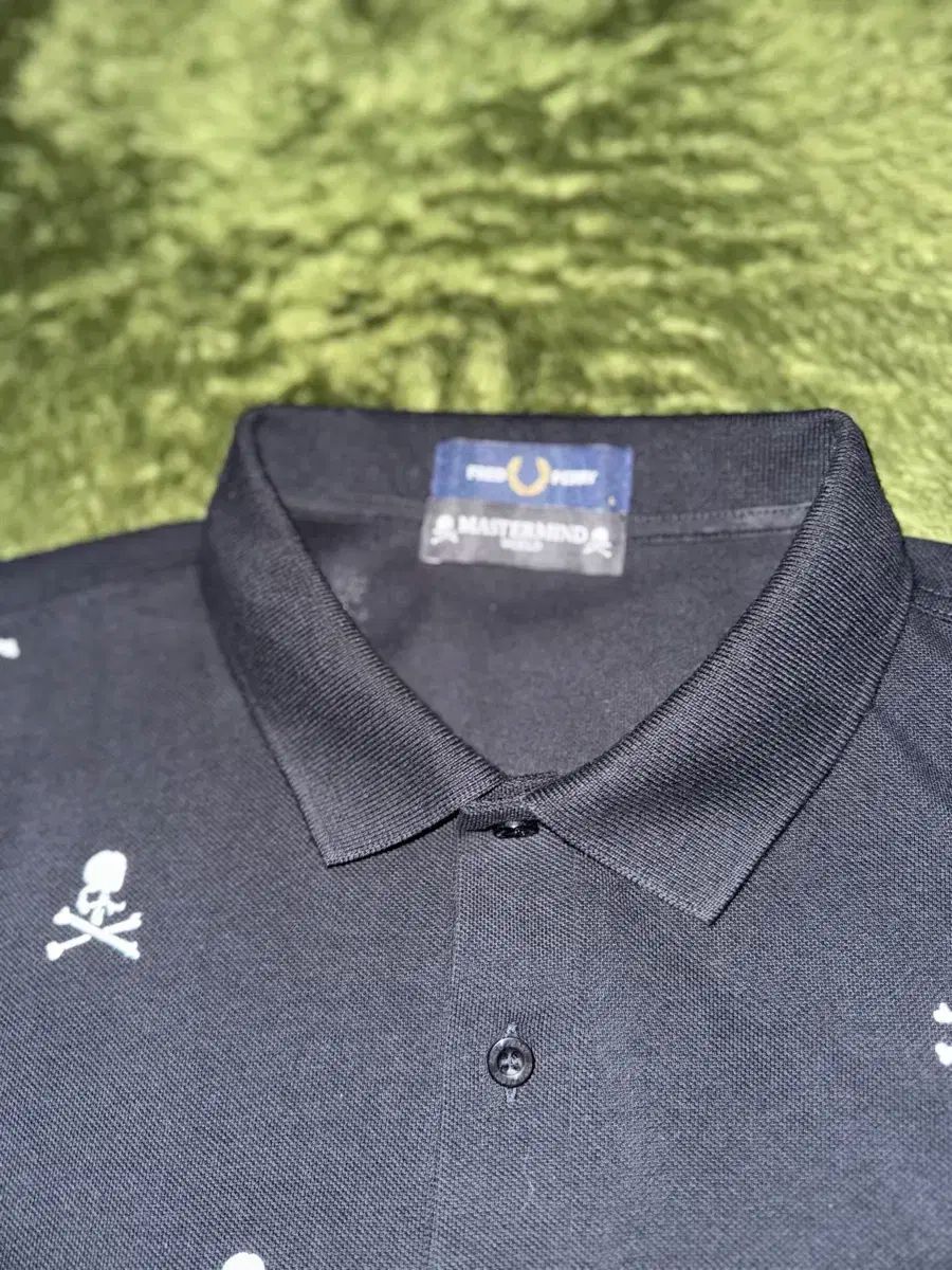L マスターマインド X フレッドペリー スカル ロゴ プリント ポロTシャツ