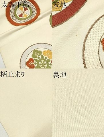 太鼓下部・表地所々・柄止まり・裏地に薄い汚れがございます。