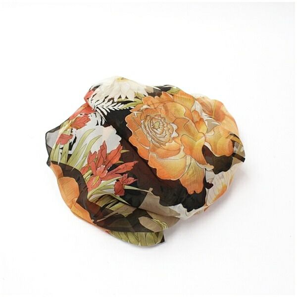 状態 透け感のあるさらりとした手触りのシルクスカーフです。落ち着いた色に大胆な花柄がお洒落な印象のアイテムです。 【状態】目立つダメージなし 【特記事項】・大きく目立つようなダメージはございませんがあくまでも新品であることをご理解の上、お買い求めください。・付属品/紙ケース