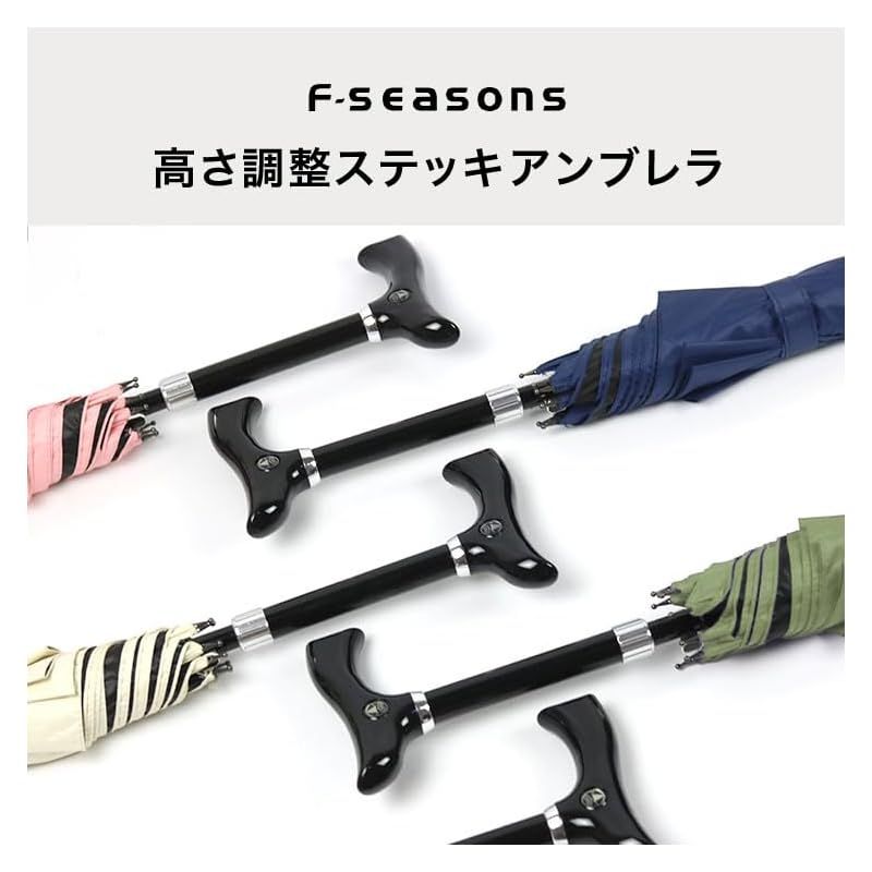 杖傘 F-SEASONS 高さ調整 ステッキ傘 長さ可変式 ステッキ 傘 一脚杖 ワンタッチ 晴雨兼用 UVカット 遮熱効果 長傘 祖父母 プレゼント 杖 自動開 散歩 ハイキング 旅行 行列 運動会 シニア アイボリー