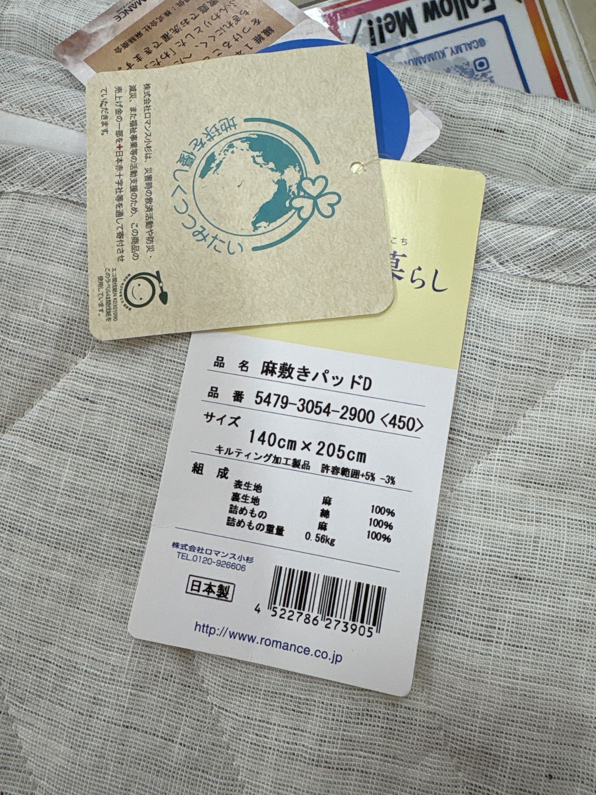 本麻を使った敷きパッドです