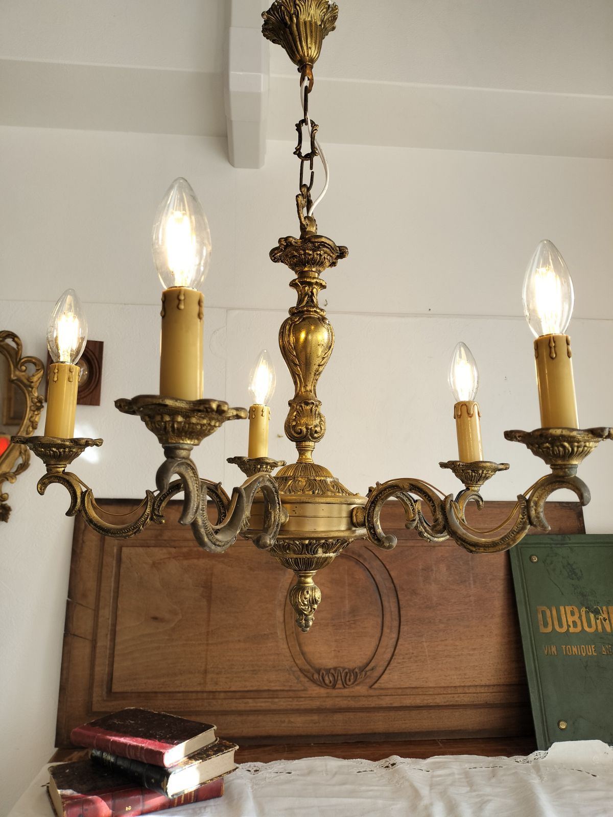 フランス アンティーク ブロンズ 装飾 シャンデリア 5灯 照明 ライト 店舗 です。