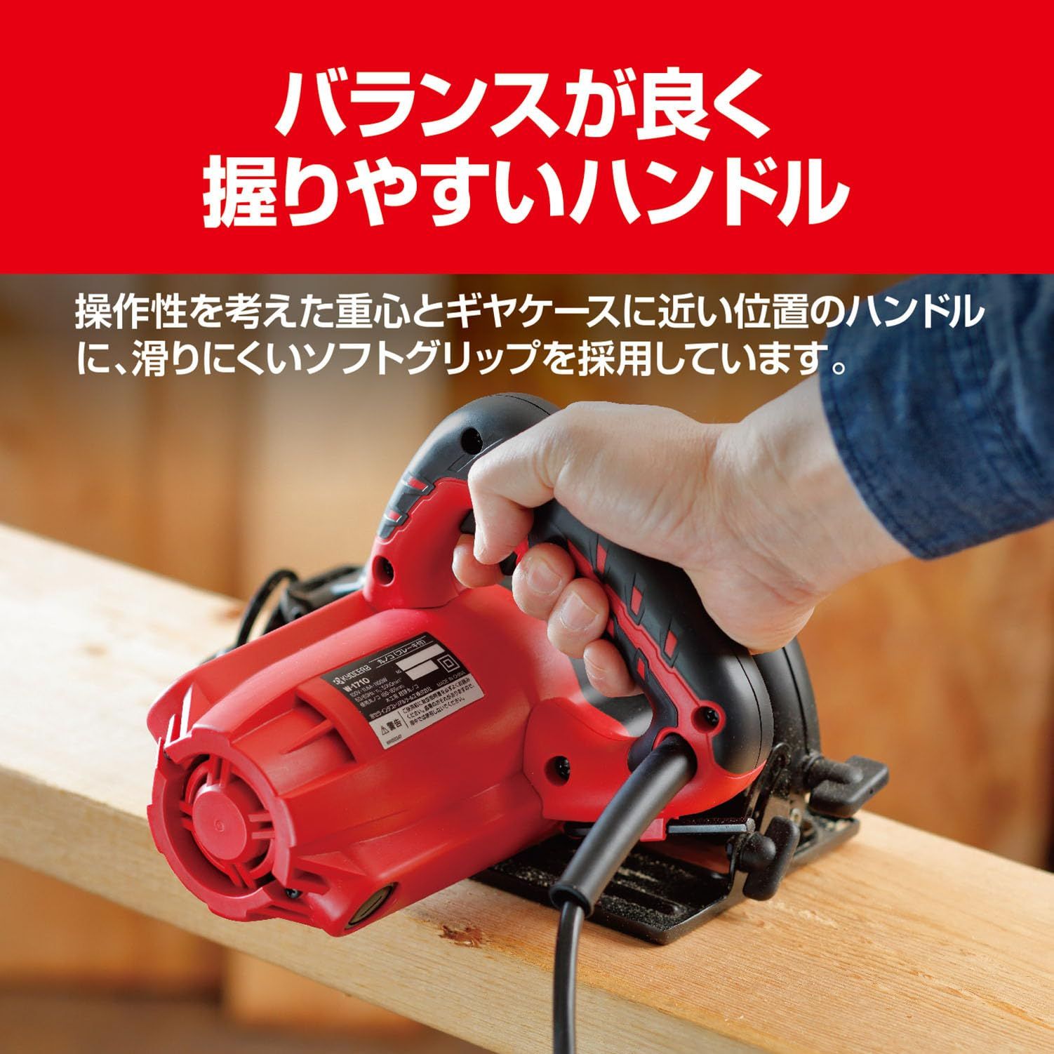 特徴:滑りにくく手にフィットするソフトグリップで作業がしやすい、DIYに適した丸ノコ